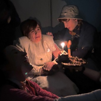 En la obra, nada parece ficción. Al ser espectador y encontrarte dentro del desarrollo, permite que se genere algo muy valioso: una escena que fluye casi de forma natural, una vinculación cercana con los personajes y el resto del público. En Berta, realmente vives un cumpleaños: ayudas a Scarlett a ordenar y decorar, grabas videos con Domi, hablas de la vida con Adriana, te ríes de (o con) Leonor, etc. mientras comparten picadillo, toman vino, agua o jugo. Los personajes y el público juegan, se toman fotos, colocan música, bailan y comparten tal y como sucedería en cualquier cumpleaños.